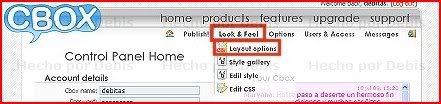 Abrir sesión y clik en Look & Fell, se abre un menú, click en Layout options